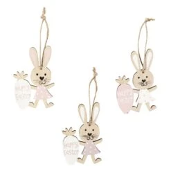 DekohĂ€nger – Hase – Happy Easter – Aus Holz – Ca. 8 X 5 Cm – 3 StĂŒck