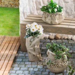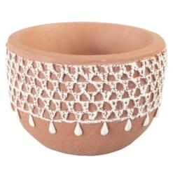 Pflanzgefäß – Boho – Aus Magnesia – Ca. 33 X 33 X 21 Cm – Braun/weiß