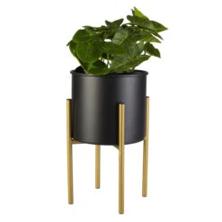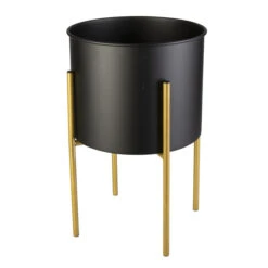 Pflanztopf Mit Ständer – Schwarz/gold – Aus Metall – Ca. 13 X 33 Cm