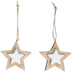 DekohĂ€nger – Stern – Aus Holz – Ca. 7 X 1 X 7 Cm – 2 StĂŒck