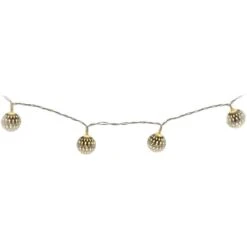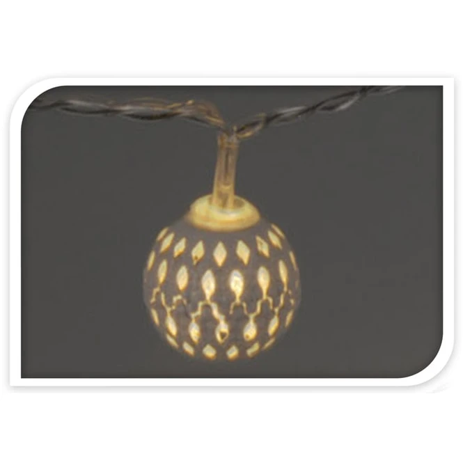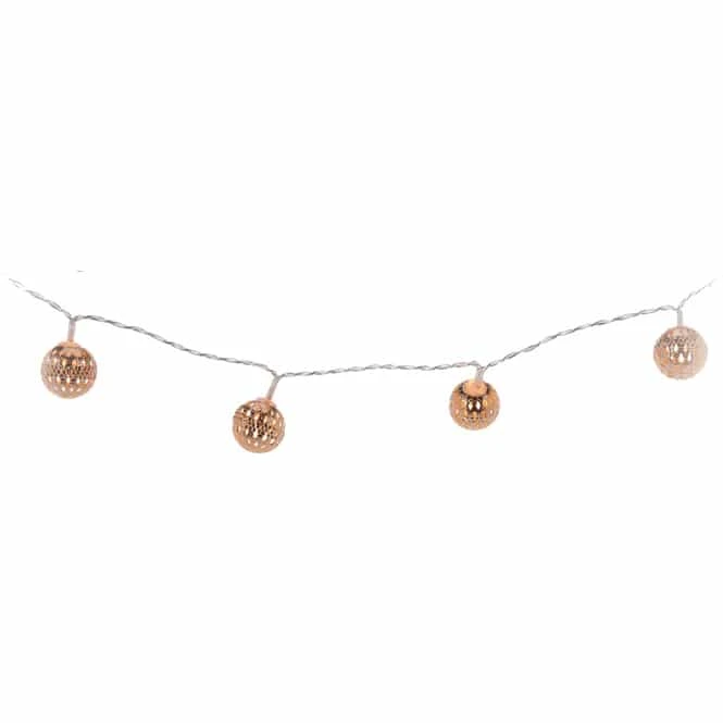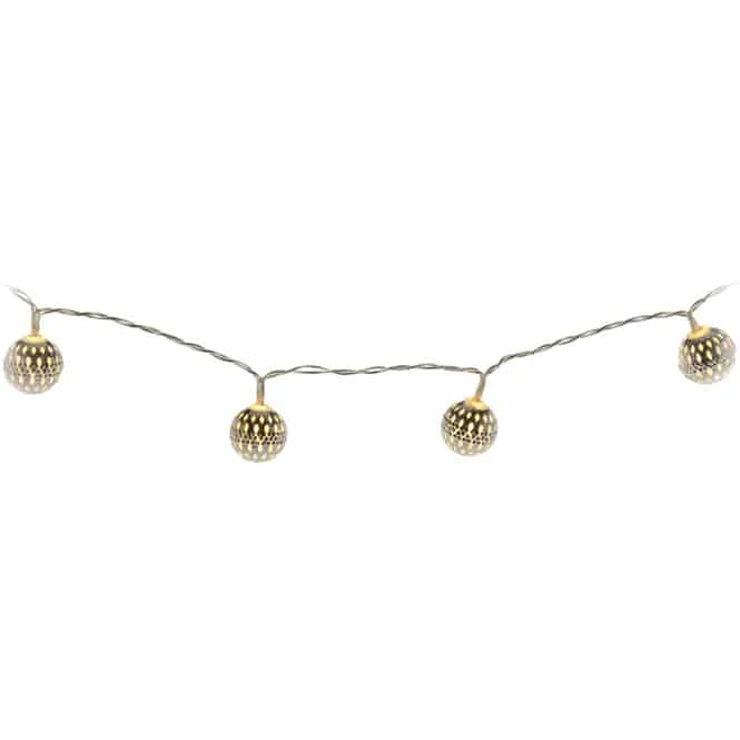 Ob um den Adventskranz gewickelt, dekorativ in einem Windlichtglas zur Schau gestellt oder kunstvoll auf einem Regal drapiert: Lichterketten sind in jeder Jahreszeit ein echtes Highlight, mit dem der KreativitĂ€t keine Grenzen gesetzt sind! Aus diesem Grund darf Ihnen die trendige LED-Kugellichterkette in der Vorweihnachtszeit keineswegs fehlen. Diese verleiht Ihren vier WĂ€nden dank der 10 warmweiĂen LEDs ein behagliches WohlfĂŒhlambiente, das zum TrĂ€umen und Entspannen einlĂ€dt. Die Kette ist 130 cm lang, in drei stylischen Farben erhĂ€ltlich und insbesondere aufgrund den liebevoll gestalteten, metallenen Kugeln das glamouröse Highlight Ihrer Weihnachtsdekoration. Mit ihr können Sie sich beim SchmĂŒcken fortan jederzeit munter austoben und der Fantasie freien Lauf lassen.