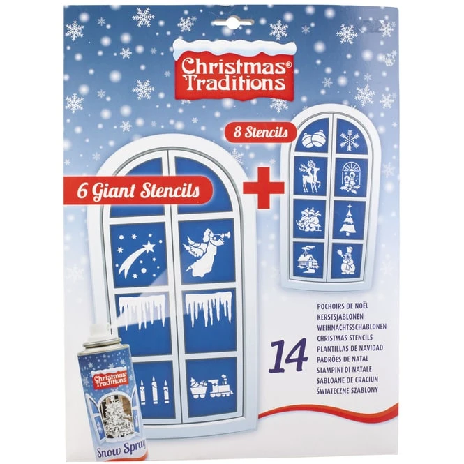 Festliche Dekoration sorgt auch an trĂŒben Regentagen fĂŒr eine wohlige Stimmung. Macht der Winter wieder einmal das, was er will, dann können Sie sich fortan zumindest zuhause Ihren Traum von Schnee erfĂŒllen. Diese praktischen 14 Weihnachtsschablonen lassen Sie im Nu und ohne groĂen Aufwand tolle Wintermotive kreieren. Diese werden einfach ans Fenster gehalten und mit Schneespray (nicht im Lieferumfang enthalten) ausgefĂŒllt. Das Dekorieren der Fenster macht schon den Kleinsten viel SpaĂ und sorgt an kalten Tagen eine gelungene Abwechslung.