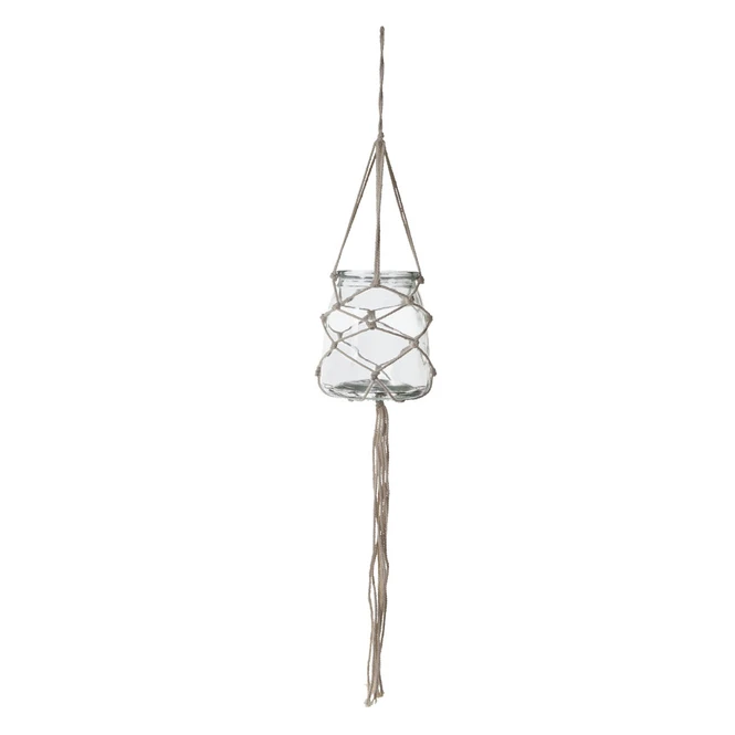 Sie sind auf der Suche nach geschmackvoller Dekoration, die ĂŒberaus modern ist und Ihre vier WĂ€nde darĂŒber hinaus in eine behagliche WohlfĂŒhloase verwandelt? Dann liegen Sie hiermit goldrichtig! Der hinreiĂende DekohĂ€nger ist genau das Richtige, um binnen Sekunden persönliche Akzente im Zuhause zu setzen und ebendiesem eine gemĂŒtliche AtmosphĂ€re zu verleihen. Er kommt in Form eines Windlichts daher, das dank der liebevollen Gestaltung ganz sicher alle Blicke auf sich zieht. Es besteht aus Glas, verfĂŒgt ĂŒber MaĂe von ca. 11,5 x 13 cm und kommt mit kunstvoll drapierten Seilen daher, die es nicht nur zu einem echten Hingucker machen, sondern mithilfe derer sich der tolle HĂ€nger auch kinderleicht an der gewĂŒnschten Stelle anbringen lĂ€sst. AnschlieĂend können Sie nach einem langen Arbeitstag ein Teelicht (nicht im Lieferumfang enthalten) darin entzĂŒnden und den Raum so ohne Aufwand in wohltuenden Kerzenschein tauchen, der zum Entspannen und TrĂ€umen einlĂ€dt. Also schnappen Sie sich das niedliche HĂ€nge-Windlicht und lassen Sie die Fantasie beim Dekorieren frei walten!
