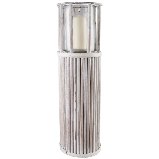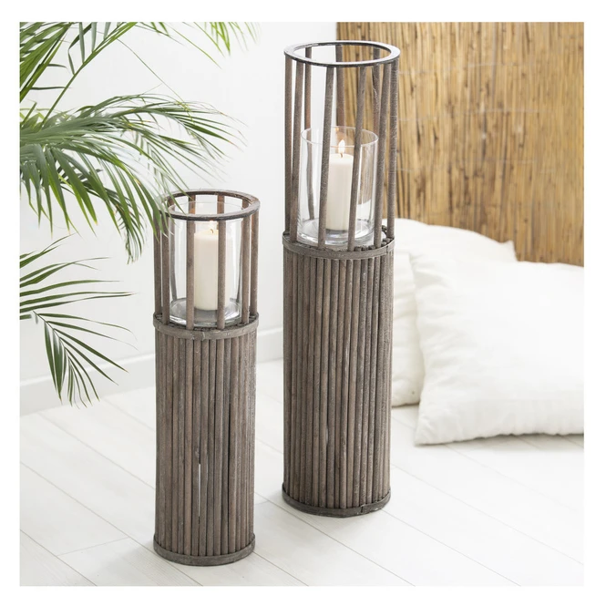 Sie mögen es, Ihrem Zuhause mithilfe stilvoller Dekoration individuelle Akzente zu verleihen und bevorzugen dabei naturbelassene StĂŒcke, welche sich unkompliziert miteinander kombinieren lassen? Dann haben wir hier genau das Richtige! Der hinreiĂende KerzenstĂ€nder besteht aus naturbelassenem Holz in Rattanoptik, verfĂŒgt ĂŒber eine Höhe von 58 cm und kommt in einem hellen Greige zu Ihnen. Durch ihn fĂŒgt sich der StĂ€nder nahtlos in jede Inneneinrichtung ein und taucht Ihre vier WĂ€nde in ein behagliches WohlfĂŒhlambiente, von dem Sie und Ihre Lieben garantiert nicht genug bekommen. Dadurch, dass die WindlichtsĂ€ule darĂŒber hinaus mit einem Glaseinsatz ausgestattet ist, können Sie im Inneren eine Kerze (nicht im Lieferumfang enthalten) anzĂŒnden und sich am wohligen Flackern der Flamme erfreuen. Ganz gleich, ob innerhalb der vier WĂ€nde, auf dem Balkon oder der Terrasse – mit diesem auĂergewöhnlichen Windlicht bleiben wirklich keine DekowĂŒnsche mehr offen.