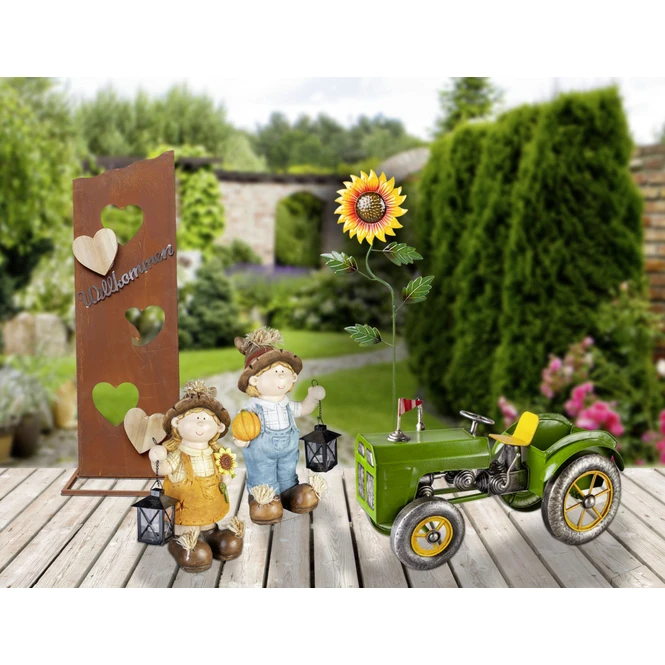 Sie sind auf der Suche nach einem fröhlichen Übertopf, der Pflanzen, Blumen und sonstige Gewächse zu einem echten Augenschmaus macht? Dann liegen Sie hiermit goldrichtig! Das hinreißende Pflanzgefäß kommt als Traktor gestaltet daher und ist somit genau das Richtige, um in Haus und Hof dekorative Akzente zu setzen. Es besteht aus Metall, misst 45,5 x 21,5 x 26 cm und ist aufgrund der detailreichen Gestaltung der absolute Augenschmaus. In Kombination mit zarten Blümchen (nicht im Lieferumfang enthalten) taucht der Pflanztraktor Ihr Zuhause in Sekundenschnelle in ein wohliges Ambiente, von welchem Sie und Ihre Lieben in den warmen Monaten garantiert nicht genug bekommen. Ganz gleich, ob im Inneren der vier Wände, auf Balkon oder Terrasse – mit dem niedlichen Blumentopf sind Ihrer Fantasie keinerlei Grenzen gesetzt. Also ran an Blumen, Erde und Co. und munter drauflos gärtnern!