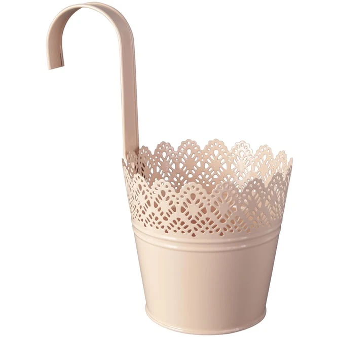 Mit dem niedlichen Pflanztopf können sich Hobbygärtnerinnen und -gärtner munter austoben und sich die zarten Farben des Frühlings mühelos in die vier Wände holen! Dieser ist nämlich ein echter Augenschmaus, von dem dank der liebevollen Gestaltung kein Trendsetter genug bekommt. Er besteht aus Metall, misst 14 x 10 x 12,5 cm und ist in verschiedenen pastelligen Tönen erhältlich. Daneben besticht der tolle Blumentopf insbesondere durch den edlen Spitzenrand, welcher ihn zu einem dekorativen Highlight macht, während er sich dank des Hakens kinderleicht an Balkon, Zaun und Co. anbringen lässt. Aus diesem Grund ist er genau das Richtige, um sich beim frühjährlichen Schmücken munter auszutoben und grenzenlosen Gartenspaß zu erleben. Also schnappt euch den hinreißenden Übertopf und lasst die Fantasie frei walten!