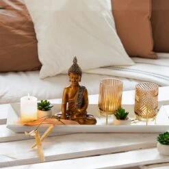 All diejenigen, die eine Dekoration bevorzugen, welche eine Vielzahl an Gestaltungsmöglichkeiten bietet, liegen mit dem stilvollen Tablett goldrichtig! Dieses eignet sich hervorragend, um der Kreativität freien Lauf zu lassen und individuelle Akzente in der Inneneinrichtung zu setzen. Es misst 60 x 20,5 x 4 cm und ist insbesondere dank der weißen Lackierung sowie der quadratischen Form der absolute Blickfang. Durch sein helles Holz fügt es sich nahtlos in jeden Raum ein und verleiht ihm dadurch eine behagliche Wohlfühlatmosphäre. Ganz gleich, ob in Kombination mit duftenden Votivkerzen, farbenfrohen Steinen oder vielfältiger Streudekoration schmücken – der Dekoteller ist auf jeden Fall der absolute Hingucker, der bei keinem echten Dekofan fehlen darf.