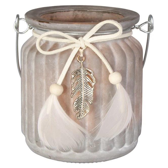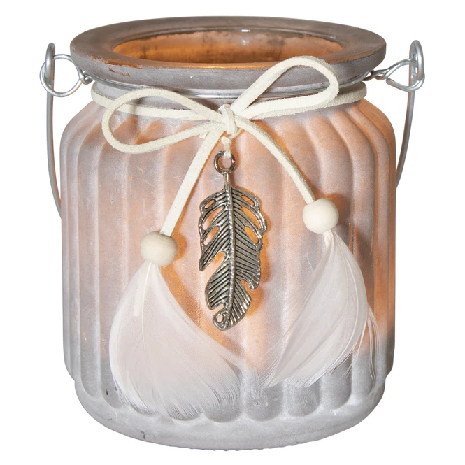 Teelichtglas – Federn – ca. 7,5 x 9 cm